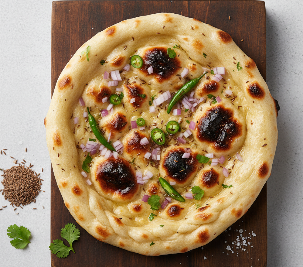 Experience the enchanting sweet and savory balance of our Buttered Kashmiri Naan – a truly unique and aromatic Indian bread!